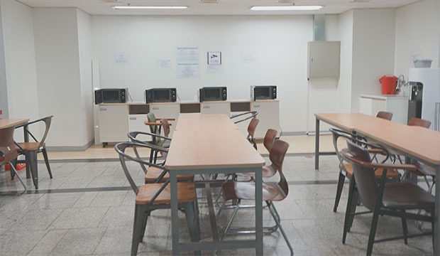 전자레인지, 싱크대, 정수기 등 다양한 편의시설이 갖춰진 공간이며, 여유로운 좌석이 마련되어 있어 편안하게 취식이 가능한 공간입니다.