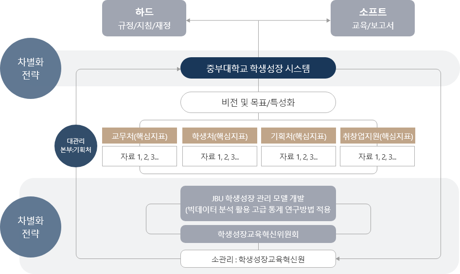 우리 대학은 대학혁신사업체계와 인재상을 개선하고 관리하기 위해 3차원의 혁신시스템으로서 혁신운영프로세스, 혁신운영원칙, 혁신시스템을 구축하였고, 대학의 성과관리가 지속적으로 이루어져 지역사회 및 국가에 필요한 인재양성 노력을 꾸준히 진행하고 있음